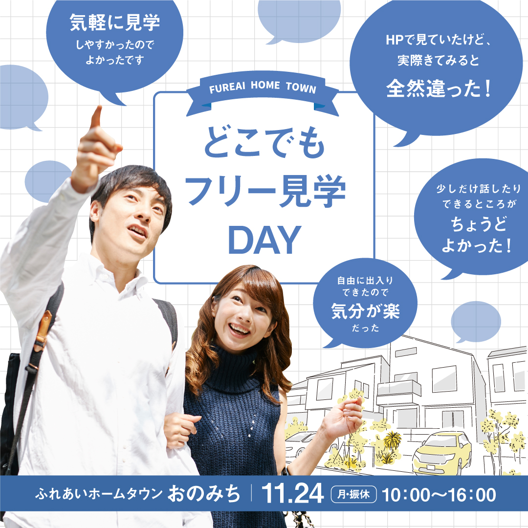 おのみち展示場では、2025年11月24日(月・振休)に、「どこでもフリー見学DAY」を開催します。