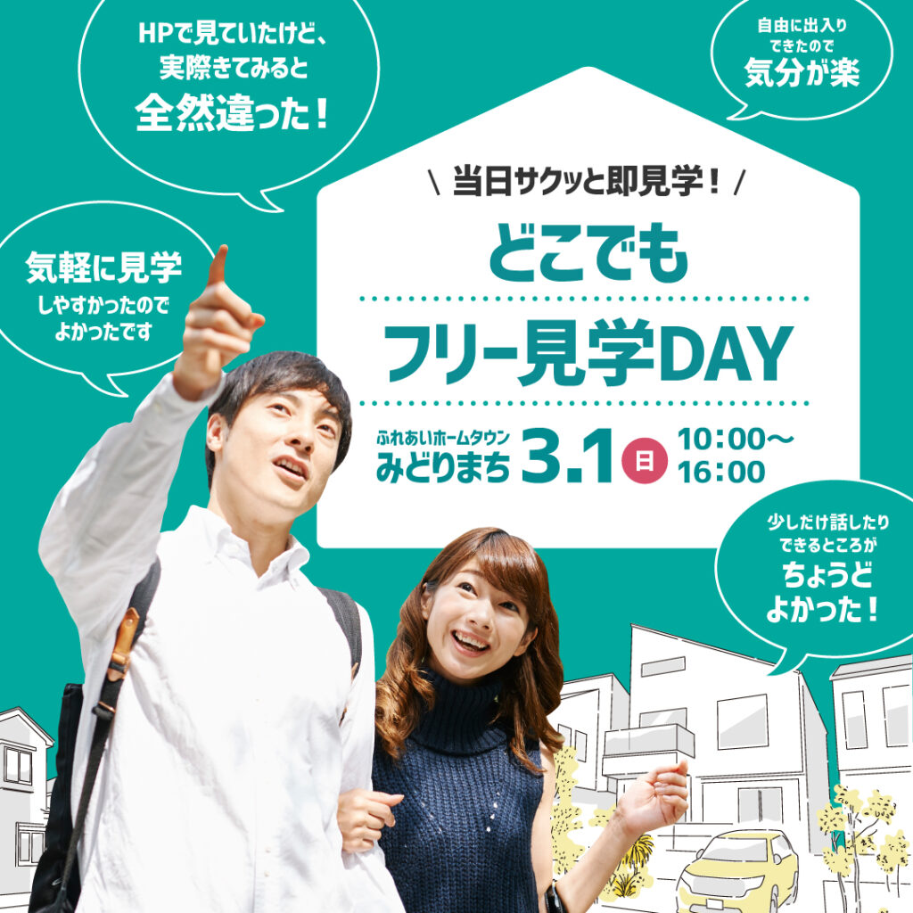 みどりまち展示場では、2026年3月1日(日)に、「どこでもフリー見学DAY」を開催します。