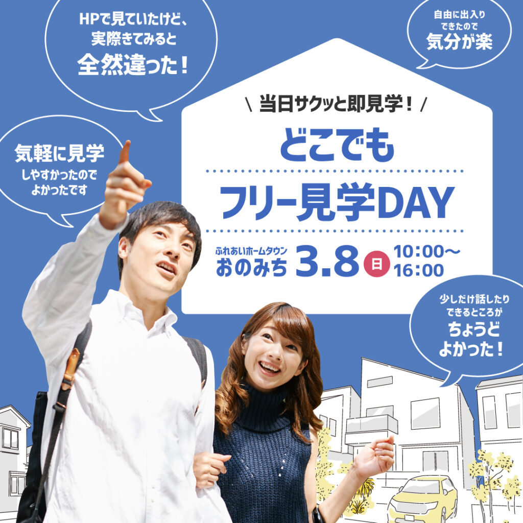 おのみち展示場では、2026年3月8日(日)に、「どこでもフリー見学DAY」を開催します。