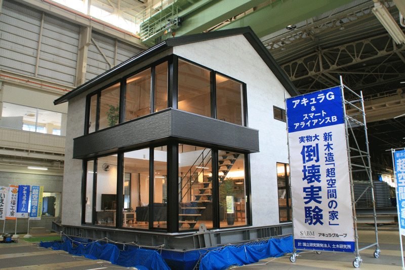 アキュラホームでは、東日本大震災や熊本地震、新潟中越地震などのこれまで日本で起きた震度7以上の地震や、南海トラフ地震のような今後起こると予測される地震など、さまざまな揺れを想定した耐震実験を実施。試験体には、広いリビングや大きな吹き抜け、コーナー窓などを設け、室内に家具まで設置した、実験としては不利な条件の実物大住宅を使っているというから驚きです。さまざまな地震波で10回実験を行った結果、最後まで無損傷という結果となり、その結果は大学などの研究機関にも大きな評価を得ました。さらに、木造5階建てビルでも耐震実験を行うなど、常に住宅性能向上のために力を注いでいるのも強みのひとつです。